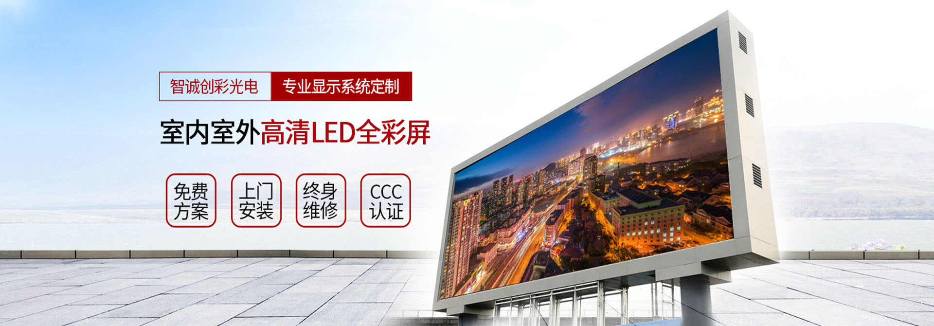 深圳市智誠創彩光電有限公司(品牌:智誠創彩)是一家專業專注 LED顯示屏研發、設計、制造、銷售及工程服務為一體的國家級高新技術民營企業,公司主營產品:小間距 LED 全彩顯示屏、戶外廣告傳媒 LED 大屏幕、室內高清 LED全彩屏、透明 LED 全彩屏、舞臺全彩 LED 顯示屏、異形定制 LED 大屏、LED 亮化及照明等應用產品。